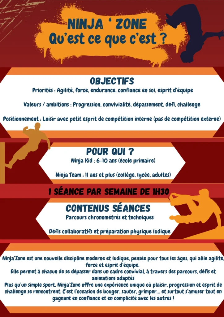 • Ninja Team (11 ans et +) : ados, lycéens, adultes… un vrai terrain de jeu sportif !