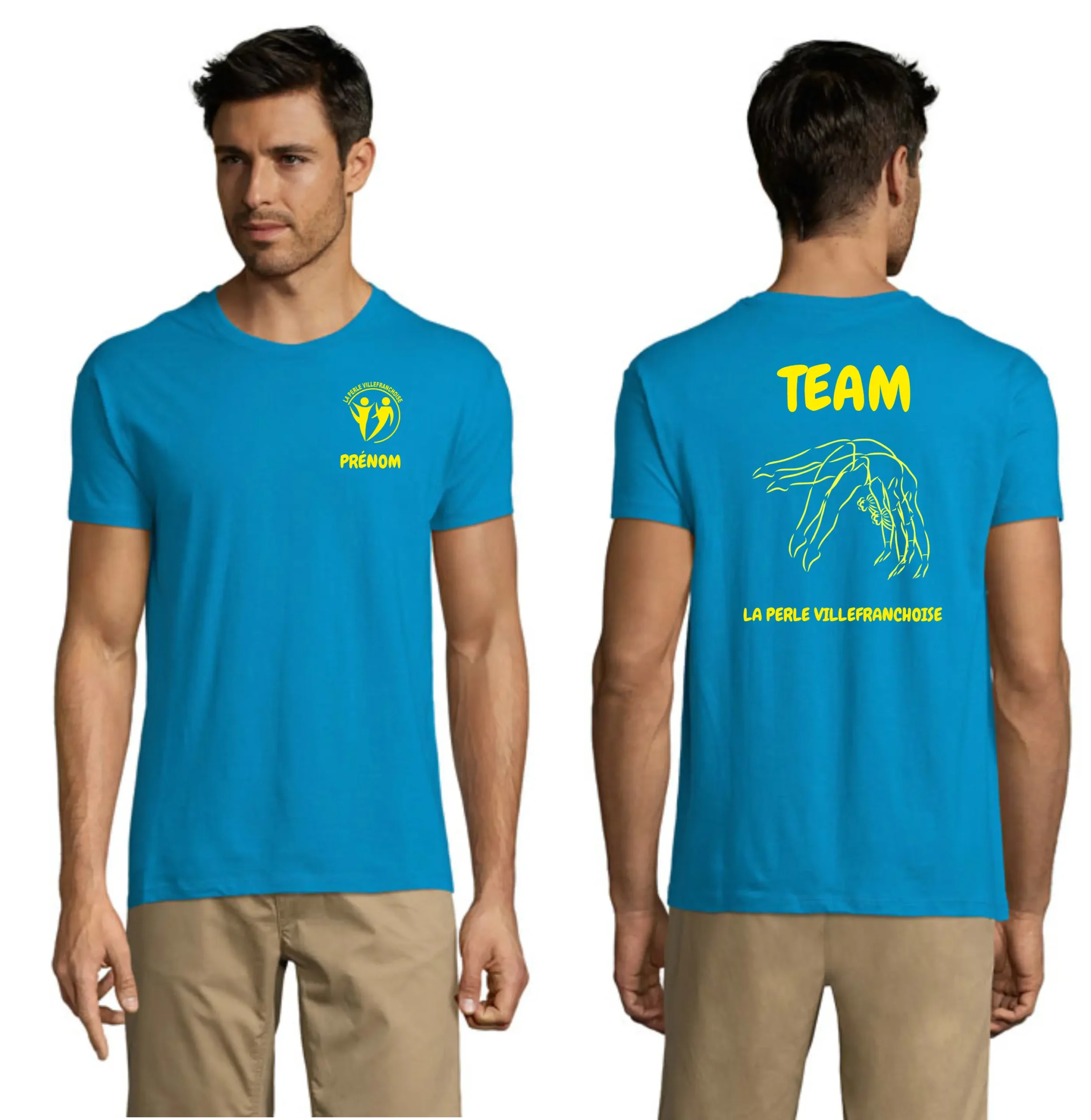 T-shirt TEAM SUPPORTER – bleu et jaune, aux couleurs de La Perle Villefranchoise, pour afficher la fierté du club en compétition.